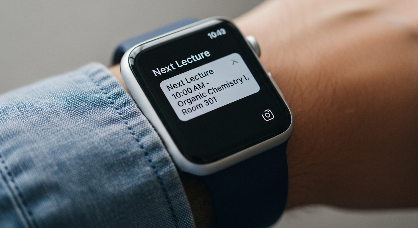 授業やバイトの時間を忘れてギリギリに動く——大学生あるあるですが、Watchの“5分前通知”なら自然と動き出せます。