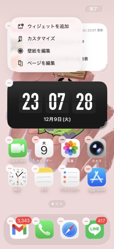 自分のホーム画面の何もないところを長押しして、画面の全アプリがぷるぷるしている状態で左上の「編集」ボタンをタップします。