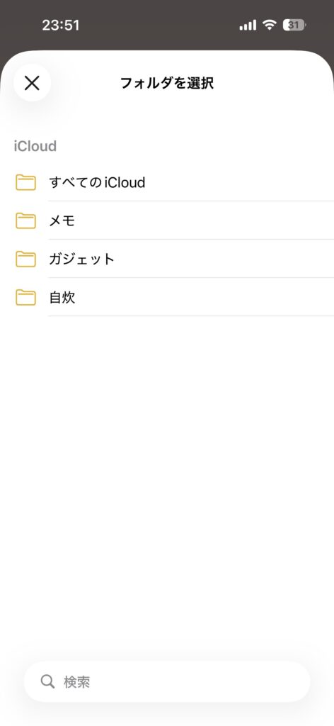 自分が書いたメモを、フォルダ単位かもしくはタイトル単位で表示させることができます。