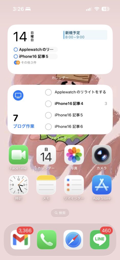 ただし、長文であるとという制約があるため、本格的に予定を組み込みたい場合はリマインダーもウィジェットに追加することをおすすめします(後述)。