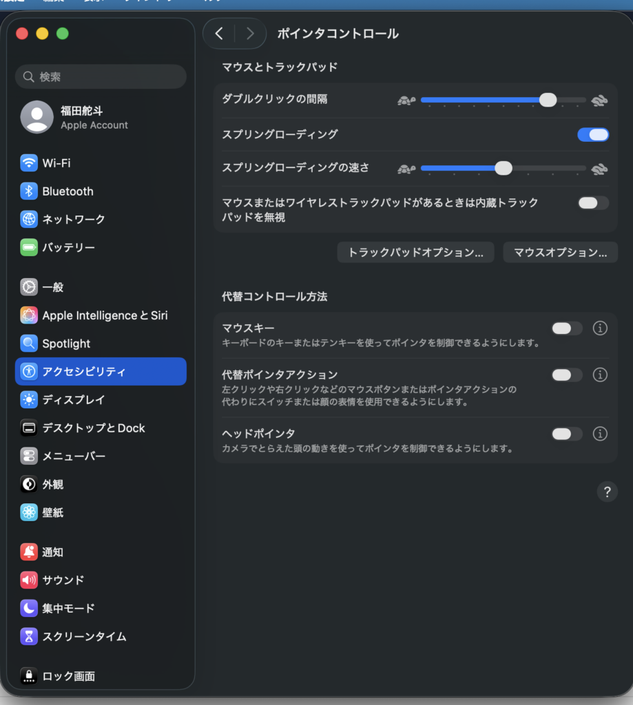 トラックパッドの設定