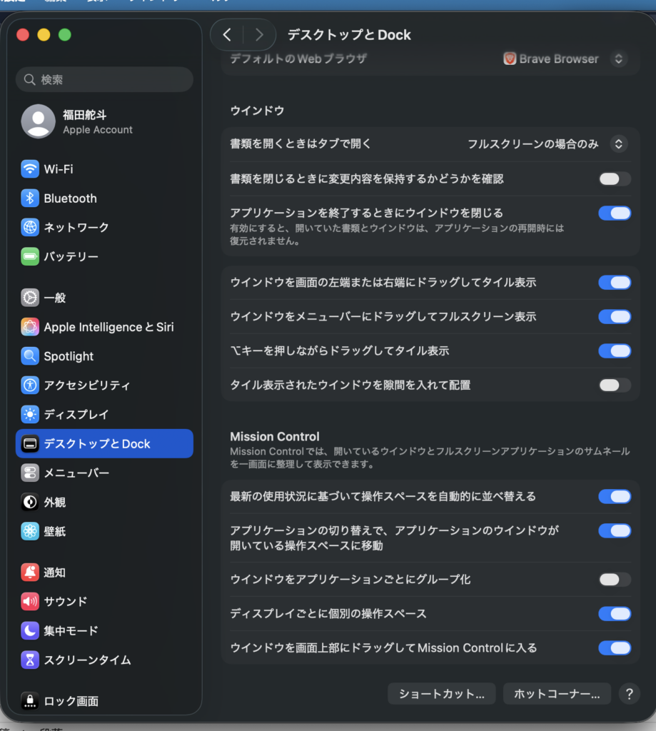 実はMacでは四隅にマウスを近づけることで、任意のアクションを設定することができます(ただし任意のアプリケーションを開くことなどはできません)。