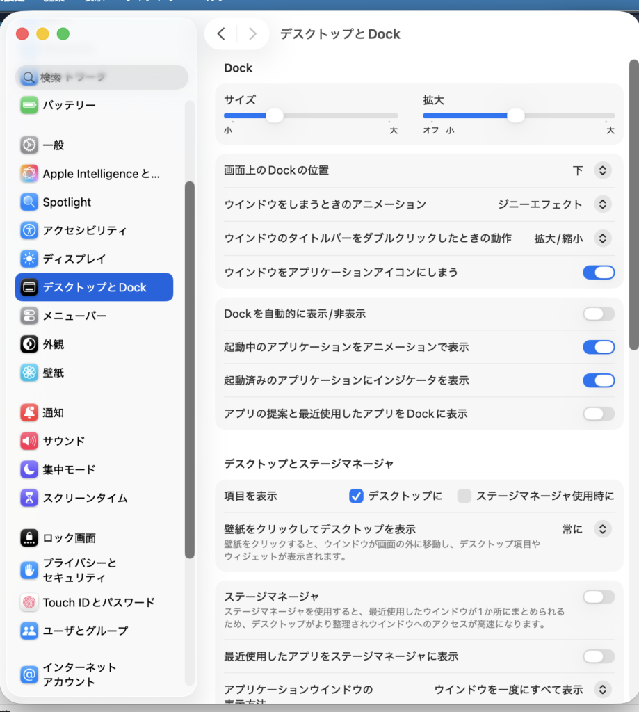 また、使うアプリケーションをDockに溜めすぎた場合は、アイコンを小さくするのがおすすめです。